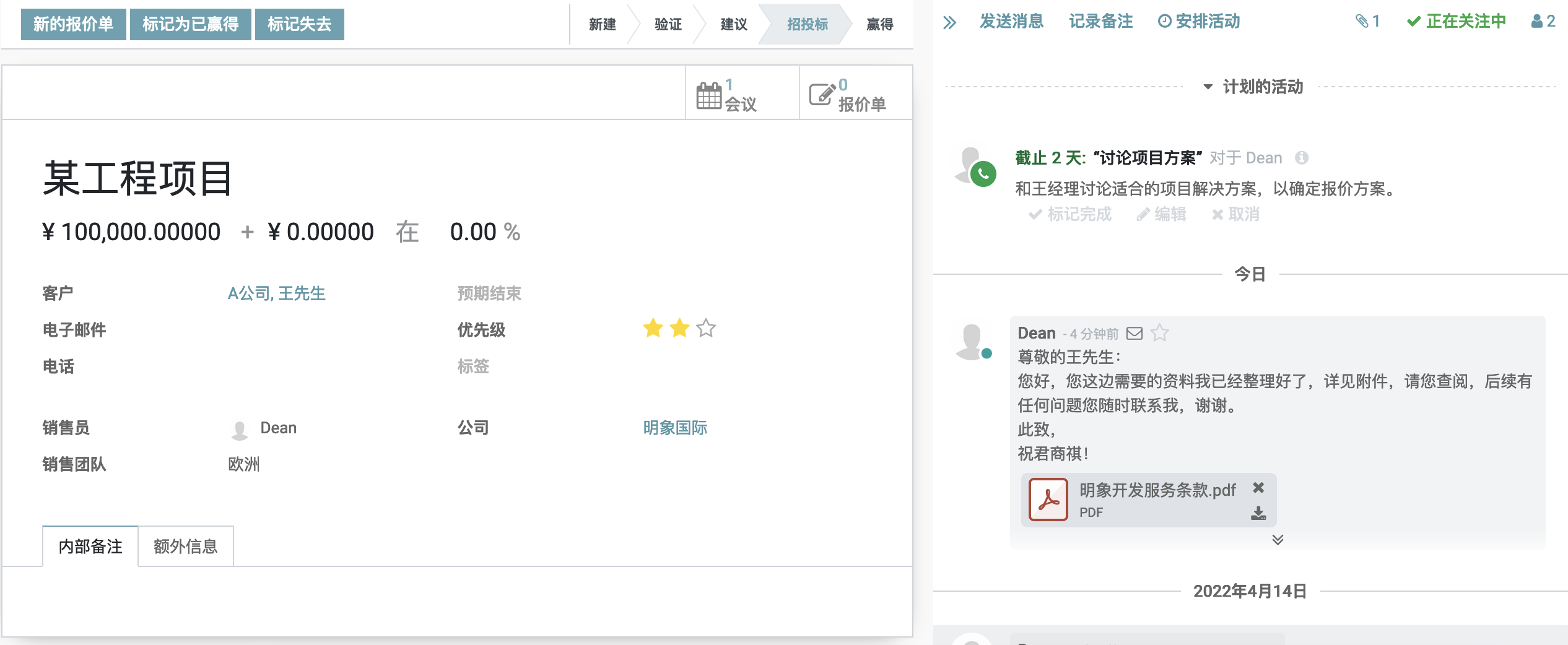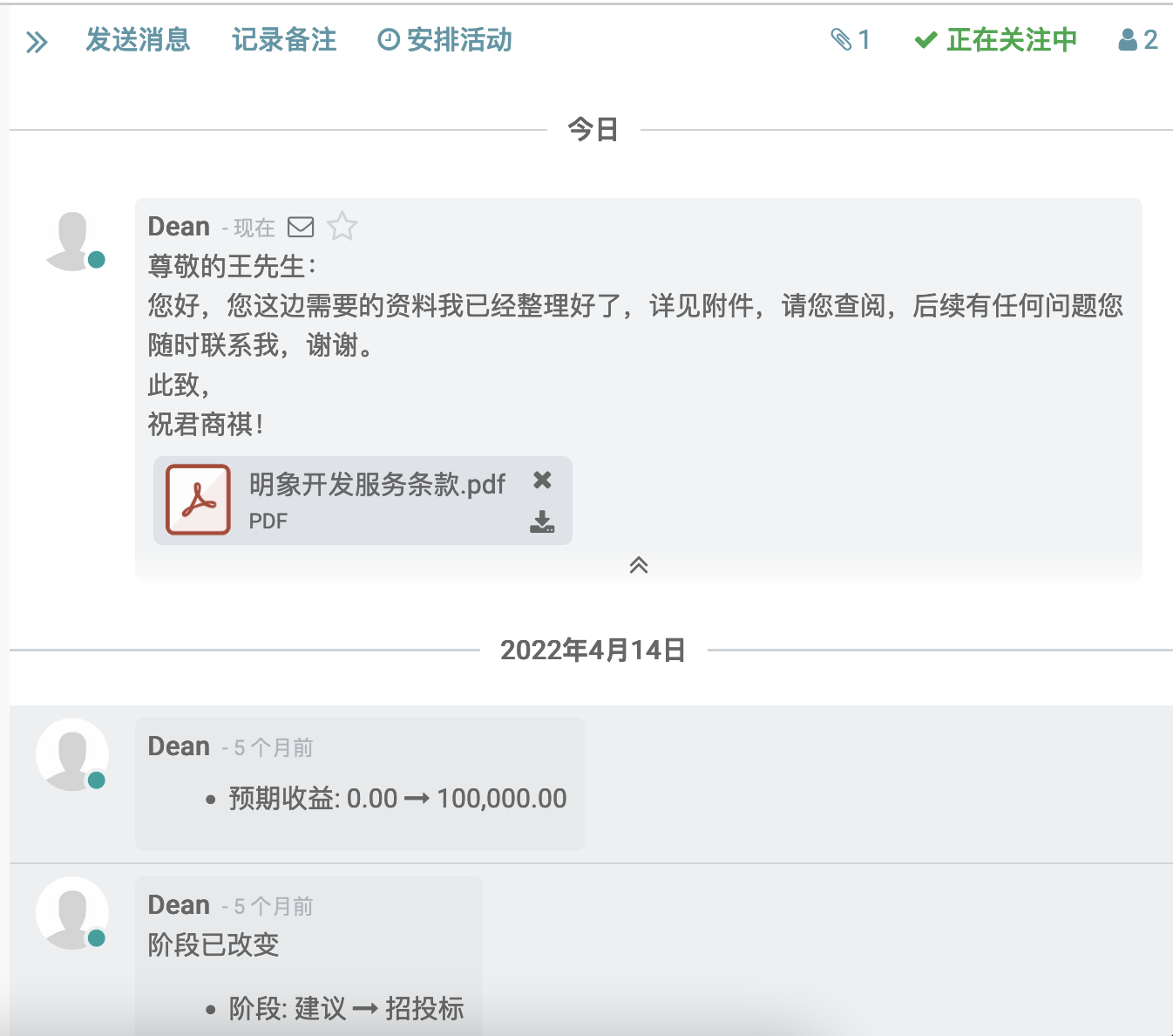 为商机来安排电话、邮件、待办等活动,在适当的节点来生成报价。对销售流程中的每一个细节轻松掌握。